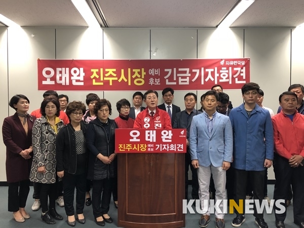 오태완 자유한국당 진주시장 예비후보가 같은 당 경선 경쟁 후보인 조규일 예비후보와 이창희 현 시장에게 사실상 후보직 사퇴를 요구했다.