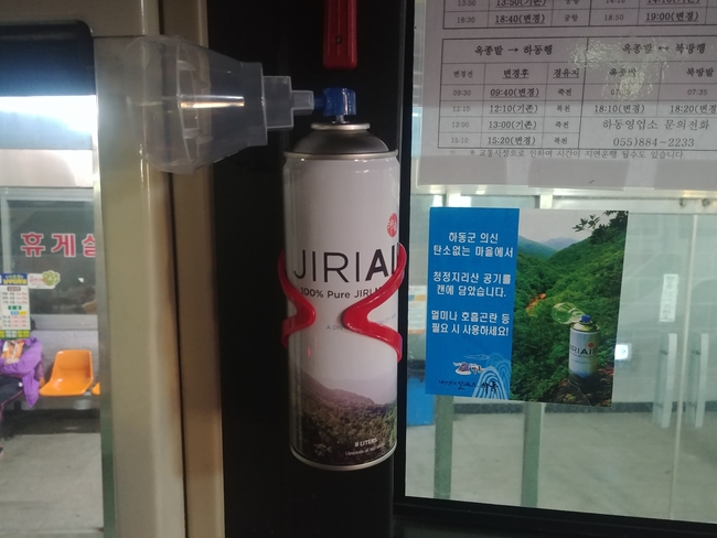 경남 하동군이 지리산 공기캔을 관내 택시·버스 등에 비치해 갑작스런 호흡곤란 등 긴급 상황 발생 시 누구나 안전하게 사용할 수 있도록 했다.