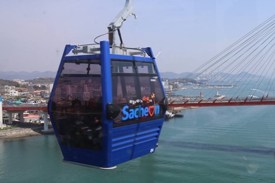 598억원의 예산이 투입된 사천바다케이블카는 국내에서는 유일하게 바다와 산을 잇고 있으며, 2422m구간을 운행한다. 캐빈 45대 중 15대는 바닥이 투명한 강화유리(크리스탈)로 제작됐다.