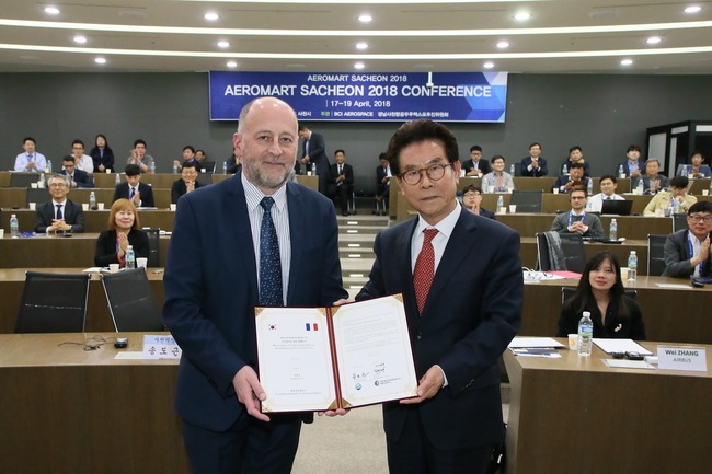 한편 사천시는 한불상공회의소를 초청해 지난 17일부터 19일까지 KB인재니움 사천연수원에서 국내외 항공기업 등 70여개 업체가 참여 중인 가운데 ‘에어로마트 사천 2018’ 행사를 열고 있다.