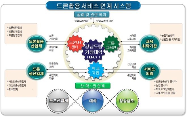 거창대학은 드론활용서비스(DaaS)산업분야의 성공적인 사업추진을 위해 산학협력선도대학육성(LINC+)사업단을 중심으로 드론산업체, 참여학과, 대학 산학협력단, 대학본부, 경상남도가 유기적으로 연계할 계획이다.