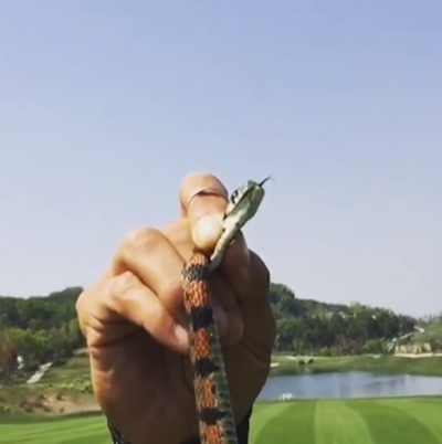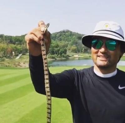 그는 해시태그로 #trinitycountryclub #18thhole#chanhopark61 #golfgallery #snake #golfcourse #뱀뱀 #박찬호 #땅꾼 #이승엽 #골프사랑 #동물사랑 등을 달았다.