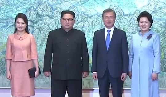 판문점 선언 후 만찬을 위해 도착한 김정숙, 리설주 여사. 김 여사가 앞서 남북정상이 산책을 하는 모습을 중계로 봤다고 하자, 김 위원장이 짐짓 놀란 듯 너스레를 떨며 되물은 말. 김 위원장은 “여기(취재진) 피해서 멀리 가서 말했는데, 그게 나왔단 말입니까?”라고 말하자 분위기는 더욱 화기애애해졌다고.