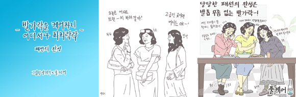 이번에 공개된 ‘패션의 완성’ 편에서는 발톱 무좀 때문에 발을 노출하지 못하고 부끄러워하는 주부들이 등장한다. 오래간만에 친구들과 브런치를 즐기기 위해 우아한 차림으로 나섰지만, 발톱 무좀 때문에 옷 차림에 어울리지 않은 투박한 신발을 신은 두 주부의 안절부절 못하는 모습이 코믹하게 담겼다.
