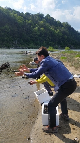 경남 산청군이 경호강과 덕천강, 양천강 등 지역 주요하천 상류에 어린다슬기 147만 마리를 지난 3일 방류했다.