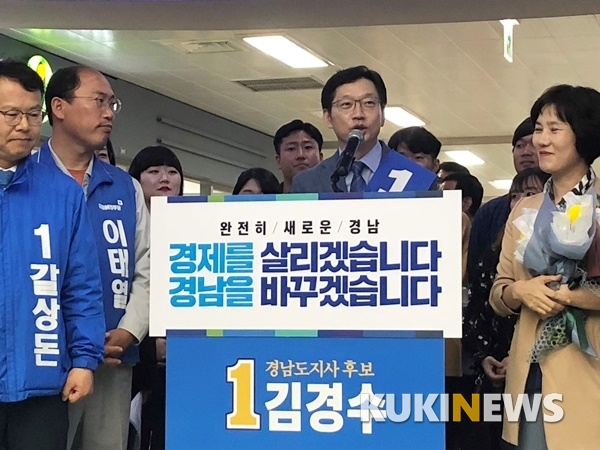 김 후보는 “우리 경남은 아픔의 한 가운데 있다. 경남의 산업은 침체의 늪으로 빠져들고 있다”고 지적한 후 “이번 선거결과를 통해 경남의 운명이 바뀐다. 경남의 미래가 달라진다. 경남의 경제를 살리기 위한 구체적인 설계도를 갖고 있다”고 말했다.
