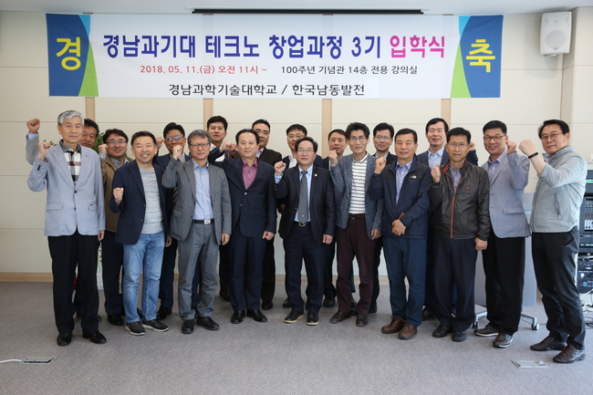 한국남동발전과 경남과학기술대학교가 11일 경남과학기술대학교 100주년 기념관에서 ‘테크노 창업과정’ 3기 입학식을 열었다.