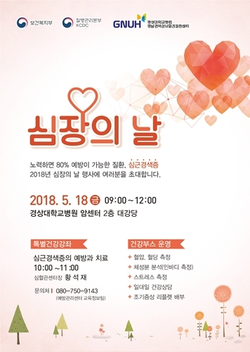 경상대학교병원 권역심뇌혈관질환센터는 심장의 날을 기념해 오는 18일 오전 9시부터 경남지역암센터 2층 대강당에서 특별 건강강좌를 개최한다.