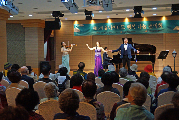 ‘행복 나눔 음악회’는 음악회를 접할 기회가 적은 주민들에게 클래식 문화를 전하고 지역 사회에 나눔을 실천하기 위해 시작됐다. 2010년부터 서울시 강남구청과 협력해 마련됐다.