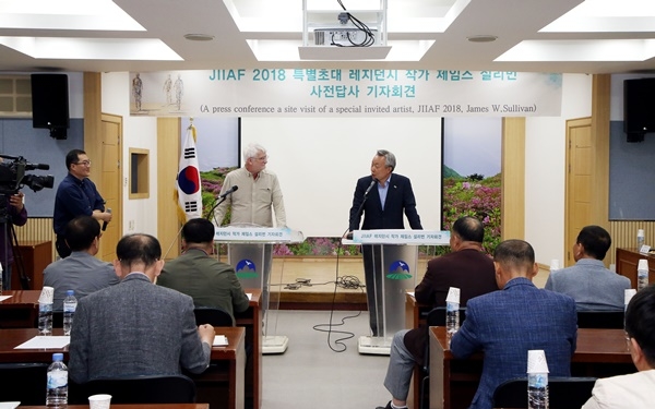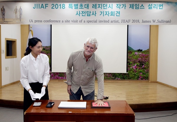 하동군은 24일 윤상기 군수와 김성수 ‘지리산 국제환경예술제’ 집행위원장 등이 참석한 가운데 ‘2018 지리산 국제환경예술제’ 레지던시 프로그램 작가인 제임스 설리번의 작품 구상계획을 알리는 기자회견을 열었다.