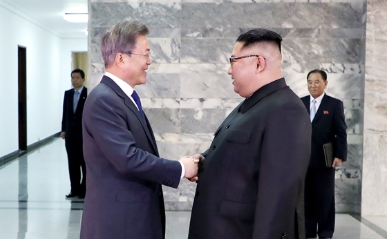김 위원장은 김영철 북한 노동당 중앙위원회 부위원장 겸 통일전선부장만을 배석한채 통일각 내부에서 문 대통령을 만났다. 남측에서는 서훈 국가정보원장이 문 대통령과 함께 회담에 참석한 것으로 알려졌다.
