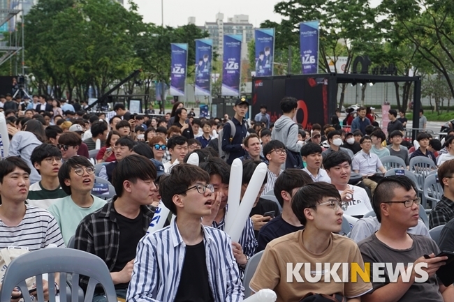 정윤종과 장윤철은 27일 오후 5시 서울 삼성동 코엑스 K-POP 광장에서 올레 tv 아프리카TV 스타리그(ASL) 시즌5 결승전 대결을 펼친다. 현장을 찾은 팬들이 무대를 지켜보고 있다.