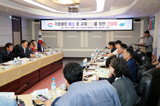 경남 산청군과 경남도는 지난 29일 산청군청에서 지역 기업체 대표 등 20여 명이 참여한 가운데 기업애로해소 및 규제완화를 위한 간담회를 열었다.