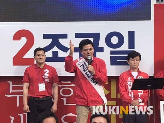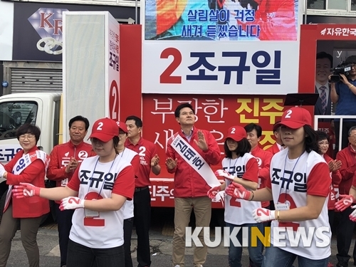 김 후보는 31일 오전 7시 진주시 대안동 광미사거리에서 열린 한국당 출정식에 참석해 이 같이 말했다. 출정식에는 조규일 진주시장 후보와 도·시의원 후보, 김재경·박대출 국회의원 등이 참석했다.