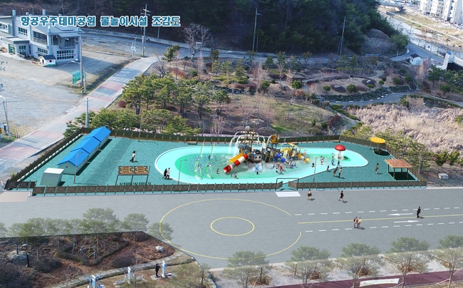 항공우주테마공원 물놀이시설은 정동면 테마공원 내 4447㎡에 사업비 8억 6천만원으로 조성 중이다.