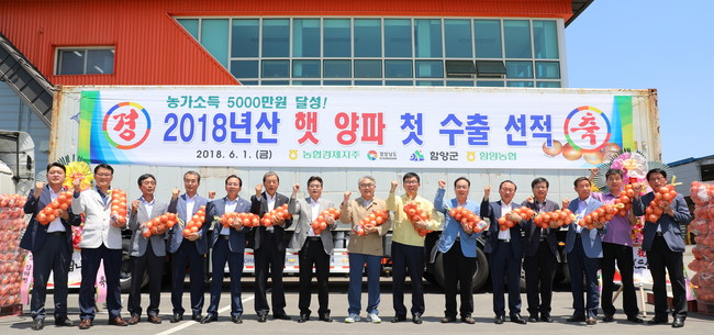 지난 함양군은 1일 함양농협 농산물산지유통센터에서 2018년산 양파 첫 수출 선적식을 열었다.