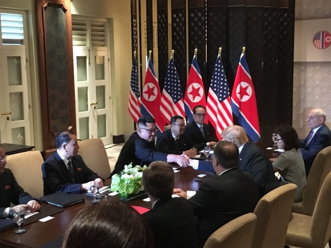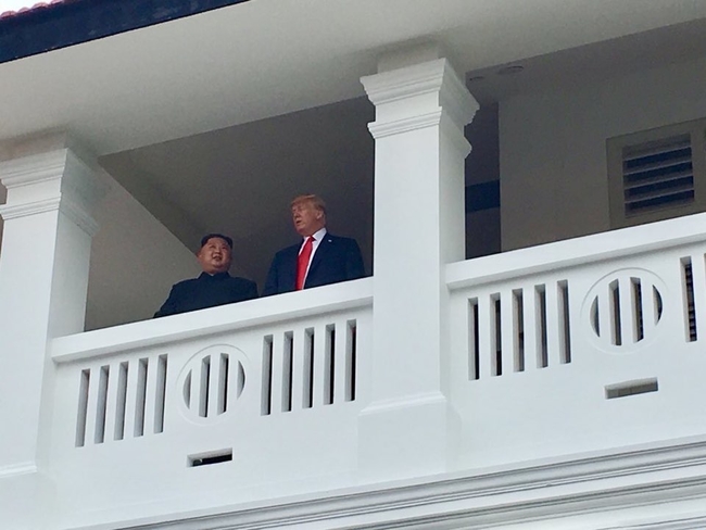 특히 샌더스 대변인은 10시5분 “트럼프 대통령과 김 위원장이 일대일 회담을 마친 후 발코니에 나와 있다”며 두 정상이 대화를 나누는 사진을 공개해 이목을 집중시켰다.