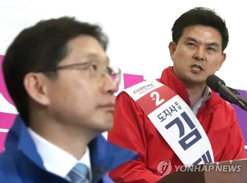 앞서 방송 3사 출구조사 결과 김경수 후보는 56.8%로 1위, 김태호 후보는 40.1%로 2위가 예상됐다. 그러나 15%p 이상 차이가 났던 출구조사와는 달리 두 후보의 순위는 개표 이후 달라졌다.