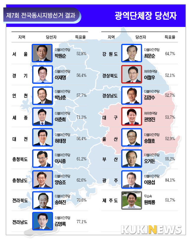 [그래픽] 제7회 지방선거 광역단체장 당선자