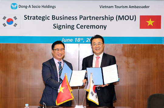 이날 MOU 체결식에는 동아쏘시오홀딩스 한종현 사장, 동아제약 최호진 사장, 베트남 문화체육관광부 주한 이창근 관광대사, 베트남관광청 응오 화이 쭝(Mr. Ngo Hoai Chung) 부청장 등이 참석했다.