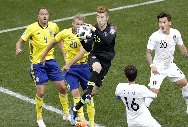 스웨덴의 일방적인 공격이 계속됐지만 한국은 무사히 전반을 무실점으로 막았다. 조현우의 안정적인 선방이 빛났다.
