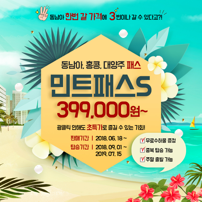 패스 가격은 현재 출시 기념으로 10만원씩 추가 할인 혜택을 제공해 연간 3회 이용할 수 있는 ‘민트패스 S1’이 39만9000원으로, 정기 특가보다도 저렴한 파격적인 가격에 판매하고 있다.