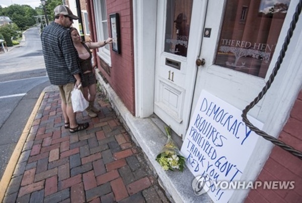 샌더스 대변인의 일행 8명은 지난 22일 미국 버지니아주 렉싱턴의 레드헨 레스토랑을 찾았다가 “도널드 트럼프 미국 대통령 밑에서 일하는 사람에게는 음식을 팔지 않겠다”는 말을 듣고 쫓겨났다.