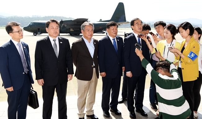 방북단은 오전 10시 3분경 군수송기 2대에 나눠 타고 성남 서울공항을 출발, 서해 직항로를 통해 평양 순안공항에 11시 10분쯤 도착했다. 방북단은 6일 귀환할 예정이다.