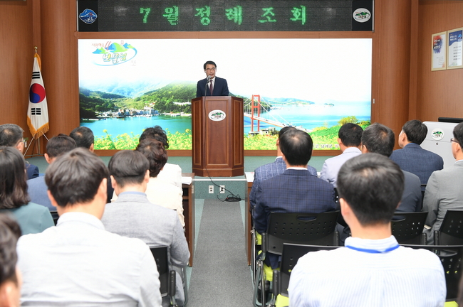 남해군은 지난 9일 군청 대회의실에서 민선7기 첫 직원 정례조회를 열었다.