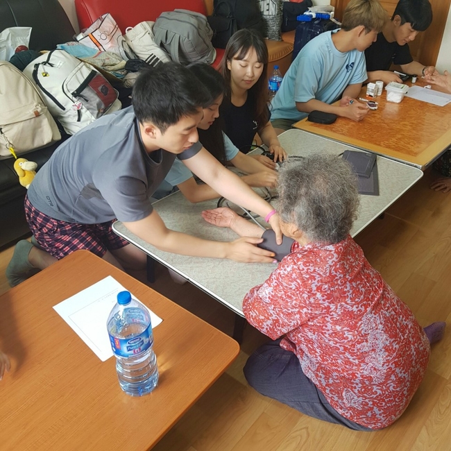농촌 일손을 돕는 일뿐만 아니라 약대생으로서 노인들의 혈압을 체크하는 등 건강상담도 진행했다.