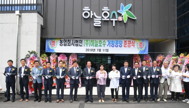 ㈜하늘호수 농업회사법인(대표 서미자)은 지난 11일 경남 거창군 북상면 갈계리에 한방추출액으로 만드는 하늘호수 화장품 거창공장 준공식을 열었다.