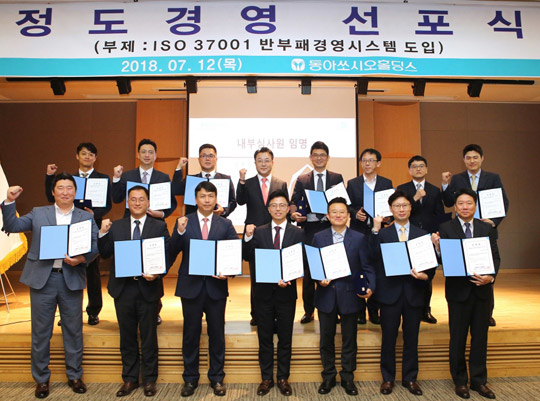동아쏘시오홀딩스(대표이사 사장 한종현)가 ISO 26000 도입과 ISO 37001 도입 및 인증 추진 등을 통해 그룹의 경영 투명성을 강화하고, 사회적 책임을 다하기로 다짐했다.