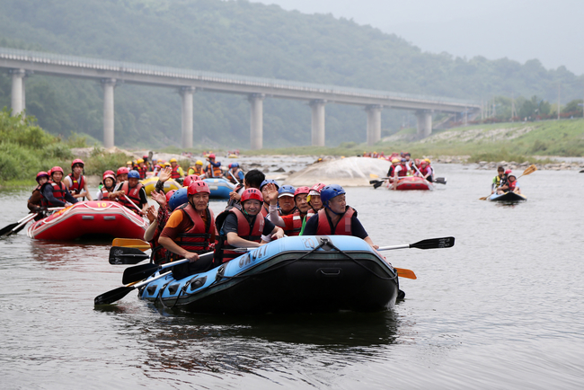 이날 래프팅 대회는 산청읍 종합 승선장을 시작으로 내리마을 한밭 앞까지 약 3.5km에 이르는 구간에서 열린다.