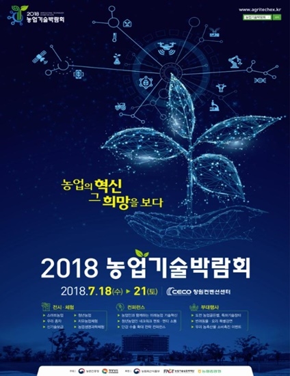 경상남도는 오는 18일부터 21일까지 창원컨벤션센터(CECO)에서 농촌진흥청과 공동으로 ‘2018 농업기술박람회’를 개최한다.
