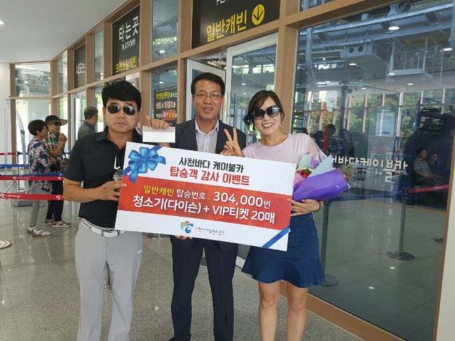 사천시시설관리공단에 따르면 개통 100일 째인 지난 21일 오후 3시께 경남 창원에서 온 안영희(51) 씨가 일반 캐빈 30만4000번째 탑승객 이벤트에 당첨됐다.