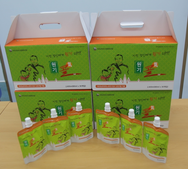 ‘원기콜’은 여름철 원기를 돕는 음료인 생맥산(生脈散)을 대체하는 음료로 거창지역에서 생산되지 않는 인삼을 황기로 대체하고 발효공정을 거쳐서 개발했다.