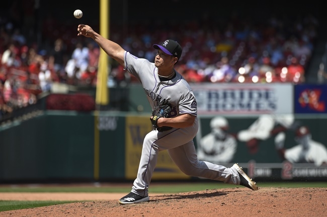 콜로라도 로키스의 오승환은 3일(한국시간) 미국 미주리주 세인트루이스의 부시 스타디움에서 열린 2018 메이저리그 세인트루이스 카디널스와의 경기에서 7회말 팀이 1-2로 지고 있는 상황에 마운드에 올랐다.