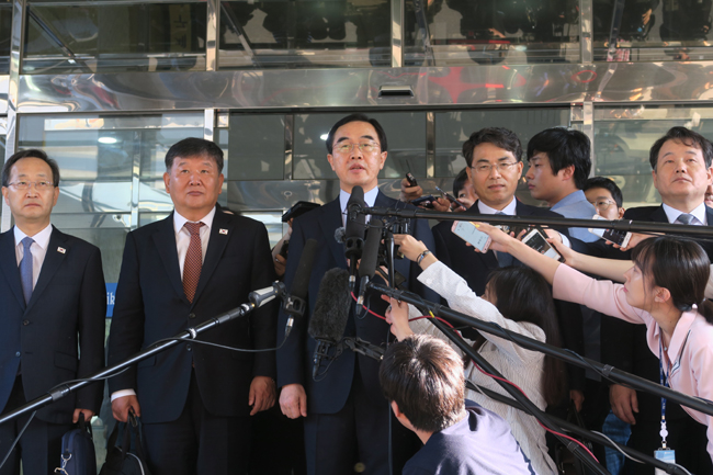 조명균 통일부 장관은 13일 회담에서 판문점 선언 이행 점검과 함께 남북 정상회담 논의도 하겠다고 말했다.