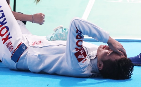 그런데 종료 40초 전 박상영이 이번엔 왼쪽 무릎을 부여잡았다. 이내 통증을 참고 일어서 14초를 남기고 12-13까지 따라붙었지만 끝내 경기를 뒤집진 못했다.