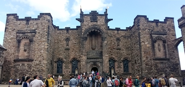 로열마일 끝에서 좁아진 통로를 건너 성으로 들어간다. 성문 양쪽에는 13세기말부터 14세기 초까지 이어진 스코틀랜드 독립운동의 두 영웅의 동상에 서 있다. 오른쪽은 영화 『브레이브하트』의 주인공이기도 한 윌리엄 월레스(William Wallace)다.