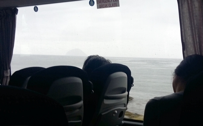 글래스고를 떠난 버스가 한 시간 정도 달리자 바다가 나타난다. 하늘은 온통 구름으로 뒤덮여 하늘과 바다를 구분할 수 없을 지경이다. 비까지 흩뿌리는 듯 버스앞 유리에 빗방울이 맺혀있다. 다만 멀리서 보아도 파도가 거세지 않은 듯해서 다행이다.