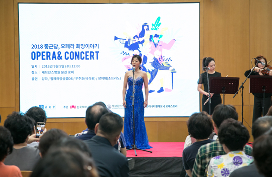종근당홀딩스(대표 우영수)는 지난 5일 신촌세브란스병원 로비에서 ‘오페라 희망이야기 콘서트’를 열었다.