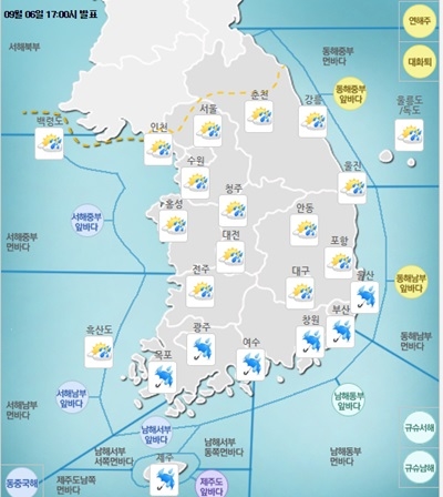 7일은 전국이 대체로 흐리고 비가 내리겠으나 중부지방은 아침에, 남부지방은 낮에 대부분 그치겠다.