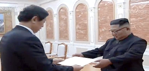 시진핑 주석이 북한과의 우호적 관계를 강조하는 친서를 북한에 전달하며 한반도 정세에 건설적인 역할을 발휘하는 등 적극적으로 나서겠다는 의사도 전했다. 이 같은 의지를 전하기 위해 전국인민대표회의 상무위원장이 직접 김정은 북한 국무위원장에게 친서를 전달했다.