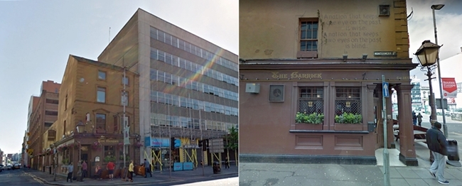 벨파스트시청에서 동쪽으로 사거리를 두 개쯤 가면 치체스터가와 몽고메리가가 만나는 사거리에 벨파스트에서도 손에 꼽는 펍 ‘개릭(The Garrick)’이 있다. 몽고메리가쪽의 벽에는 “A Nation that keeps one eye on the past is wise. A Nation that keeps two eyes on the past is blind.”라는 글귀가 적혀있다.