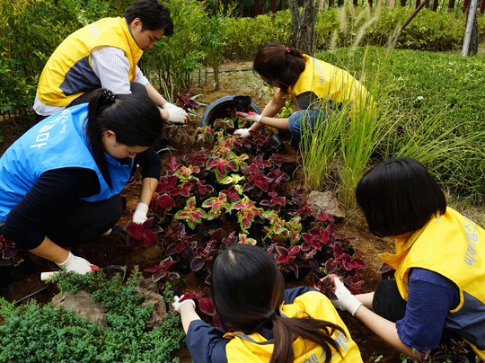 이 날 CJ헬스케어와 한국콜마 임직원들은 놀이터 주변의 잡초를 제거하는 것을 시작으로, 반송 및 좀눈행 등 공기정화에 도움을 주는 나무를 심고, 국화나 구절초 같은 형형색색의 화초류 화단을 가꾸며 안락한 정원을 만들었다.