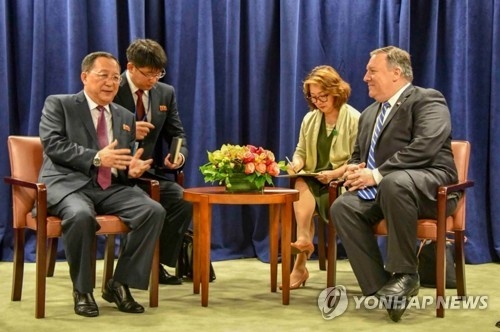 마이크 폼페이오 미국 국무장관과 리용호 북한 외무상은 26일(현지시간) 유엔총회가 열리는 미국 뉴욕에서 회동했다. 폼페이오 장관은 이날 자신의 SNS에 “매우 긍정적인 만남이었다”면서 리 외무상과 악수하는 사진을 게재했다. 이들은 2차 북미정상회담과 북한 비핵화를 위한 후속조치 등을 논의한 것으로 전해졌다. 폼페이오 장관은 이 자리에서 김정은 북한 국무위원장의 초청을 수락, 10월 방북을 약속했다.