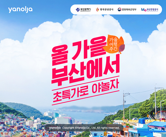 여가 플랫폼 기업 야놀자는 부산시와 부산관광공사, 11번가 등과 공동으로 가을여행주간 부산여행 온라인 기획전을 실시한다.