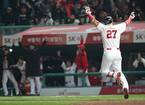 반면 SK는 8회 로맥의 솔로 홈런, 이재원의 투런포로 승기를 굳혔다.