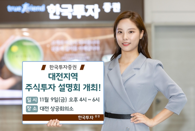한국투자증권은 9일 오후 4시부터 대전 상공회의소에서 대전지역 개인투자자 대상 주식투자 설명회를 개최한다.